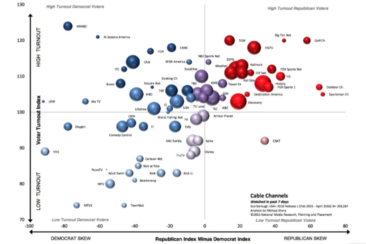 But think about how different it feels when you’re watching Duck Dynasty. You’re not there for political content. You’re watching a family run a duck call business, eating dinner together, dealing with everyday problems. And while you’re entertained, you’re absorbing a very particular worldview about family structure, religious values, gender roles, what “real America” looks like. It doesn’t feel political because it’s not framed as politics. It’s just a show about people living their lives.