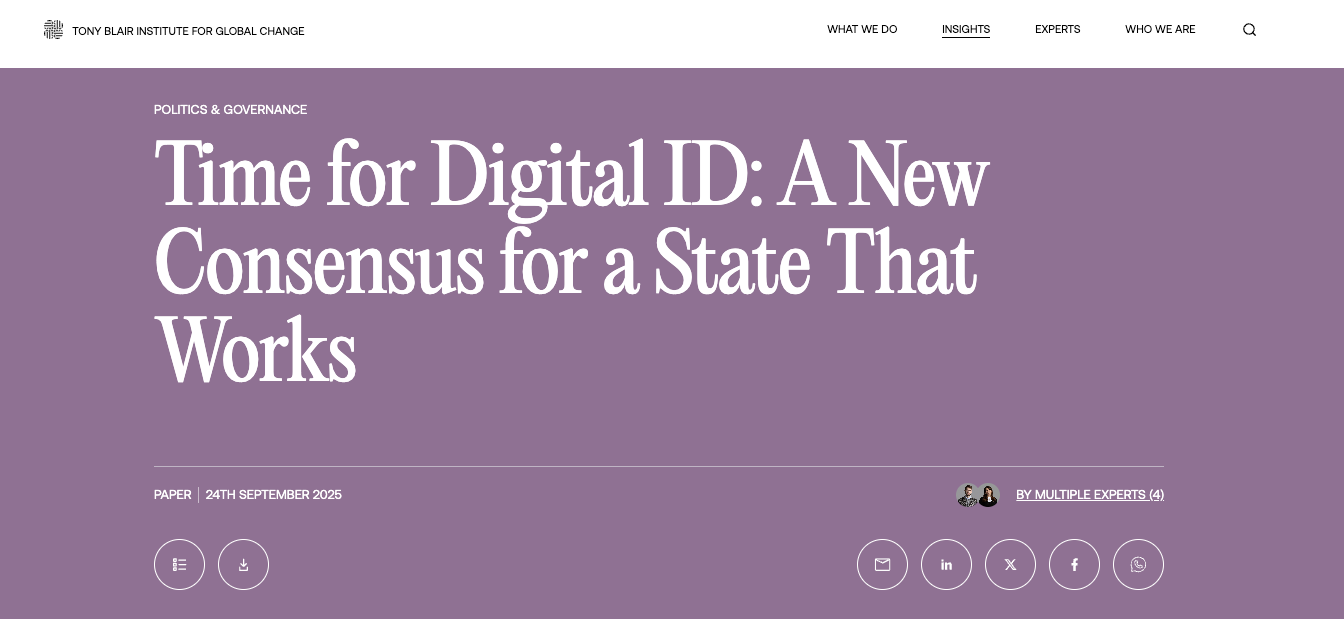 Tony Blair Institute – Time for Digital ID: A New Consensus for a State That Works (Sep 24, 2025)