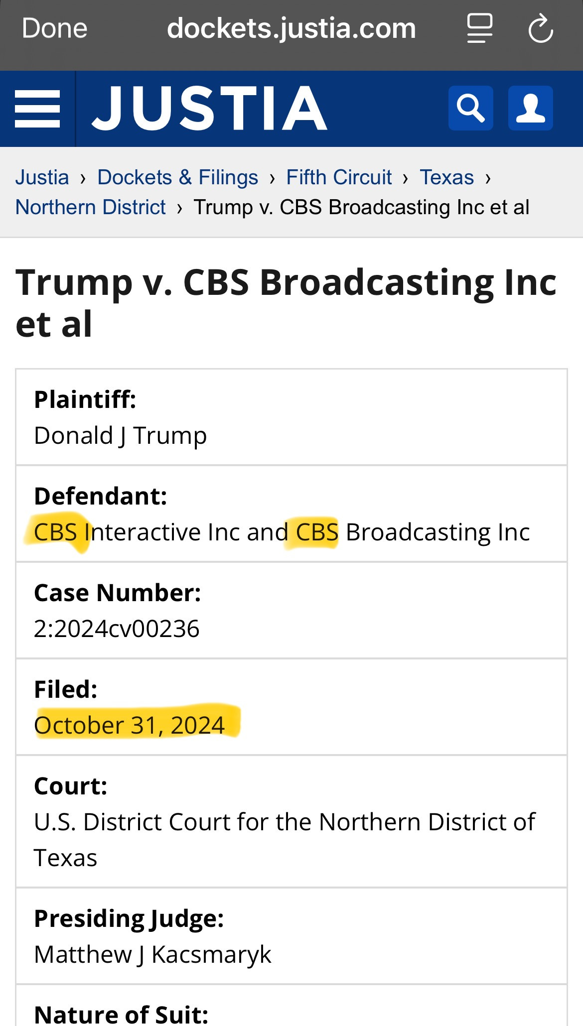 October 30: The very next day, Donald Trump sued CBS for ten billion dollars over a 60 Minutes interview with Kamala Harris, the one where she was pressed about Israel and Gaza. And he didn’t file the lawsuit in New York or Washington, where CBS actually operates. He filed it in Amarillo, Texas, a single-judge division where every case goes to Matthew Kacsmaryk, one of Trump’s most reliable allies on the bench.